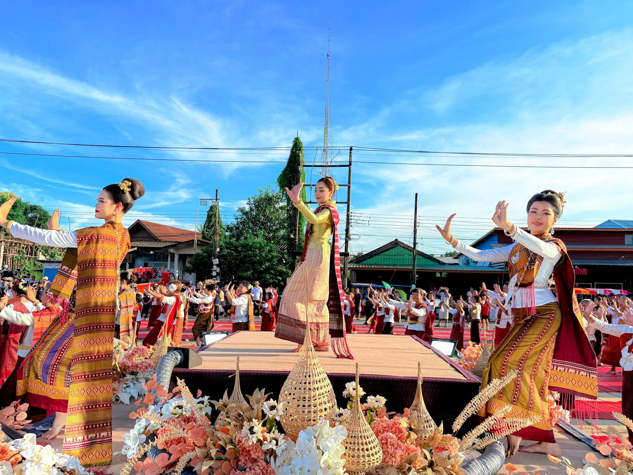 ครูและนักเรียนร่วมรำบวงสรวง สืบสานประเพณีออกพรรษาบั้งไฟพญานาคโลก