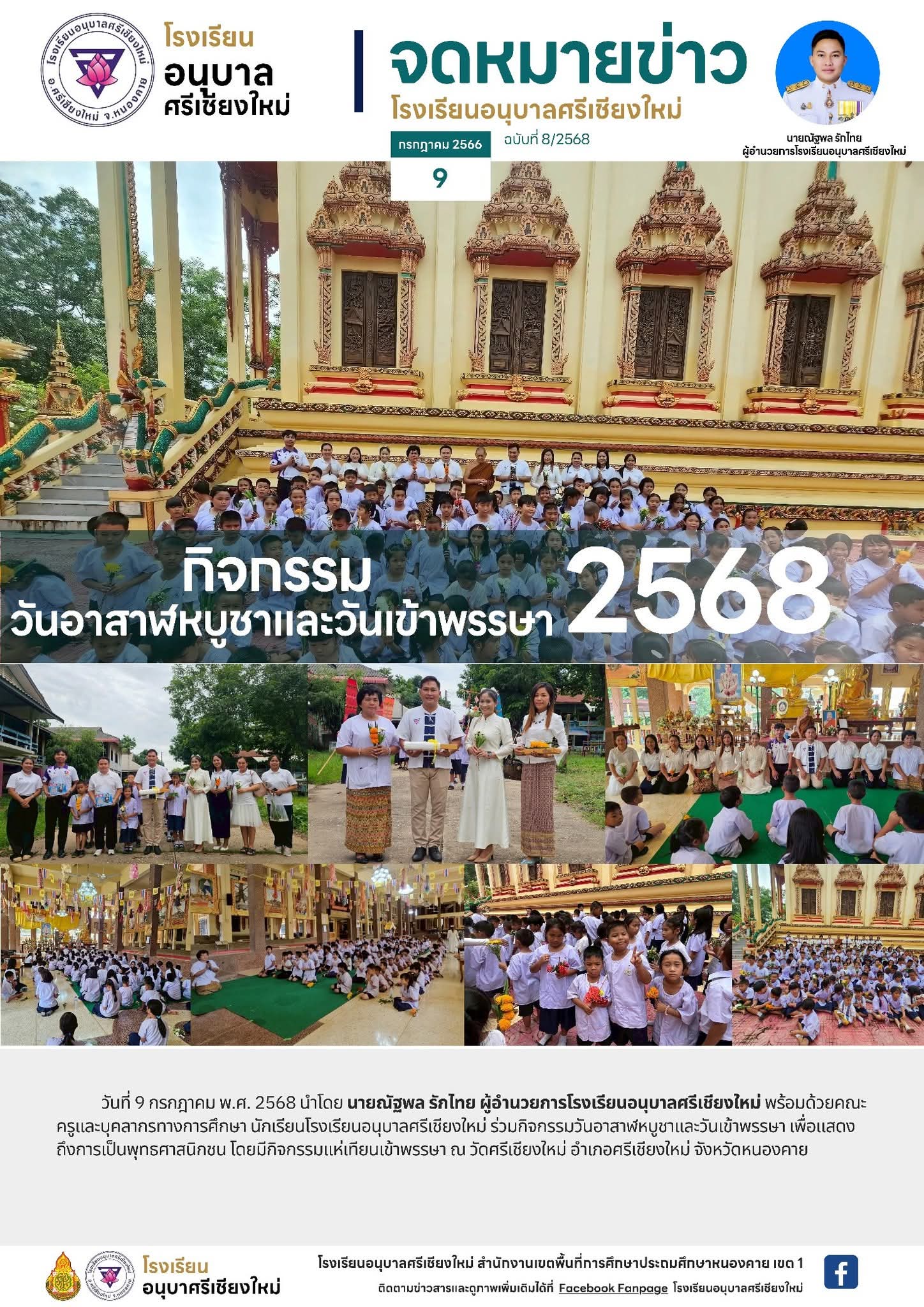 ร่วมกิจกรรมวันอาสาฬหบูชาและวันเข้าพรรษา เพื่อแสดงถึงการเป็นพุทธศาสนิกชนที่ดี โดยมีกิจกรรมแห่เทียนเข้าพรรษา ณ วัดศรีเชียงใหม่ อำเภอศรีเชียงใหม่ จังหวัดหนองคาย