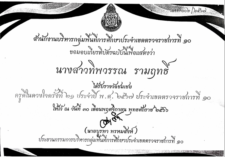 ผลงานเขตตรวจราชการที่10 ครูดีในดวงใจ คุณครูทิพวรรณ รามฤทธิ์