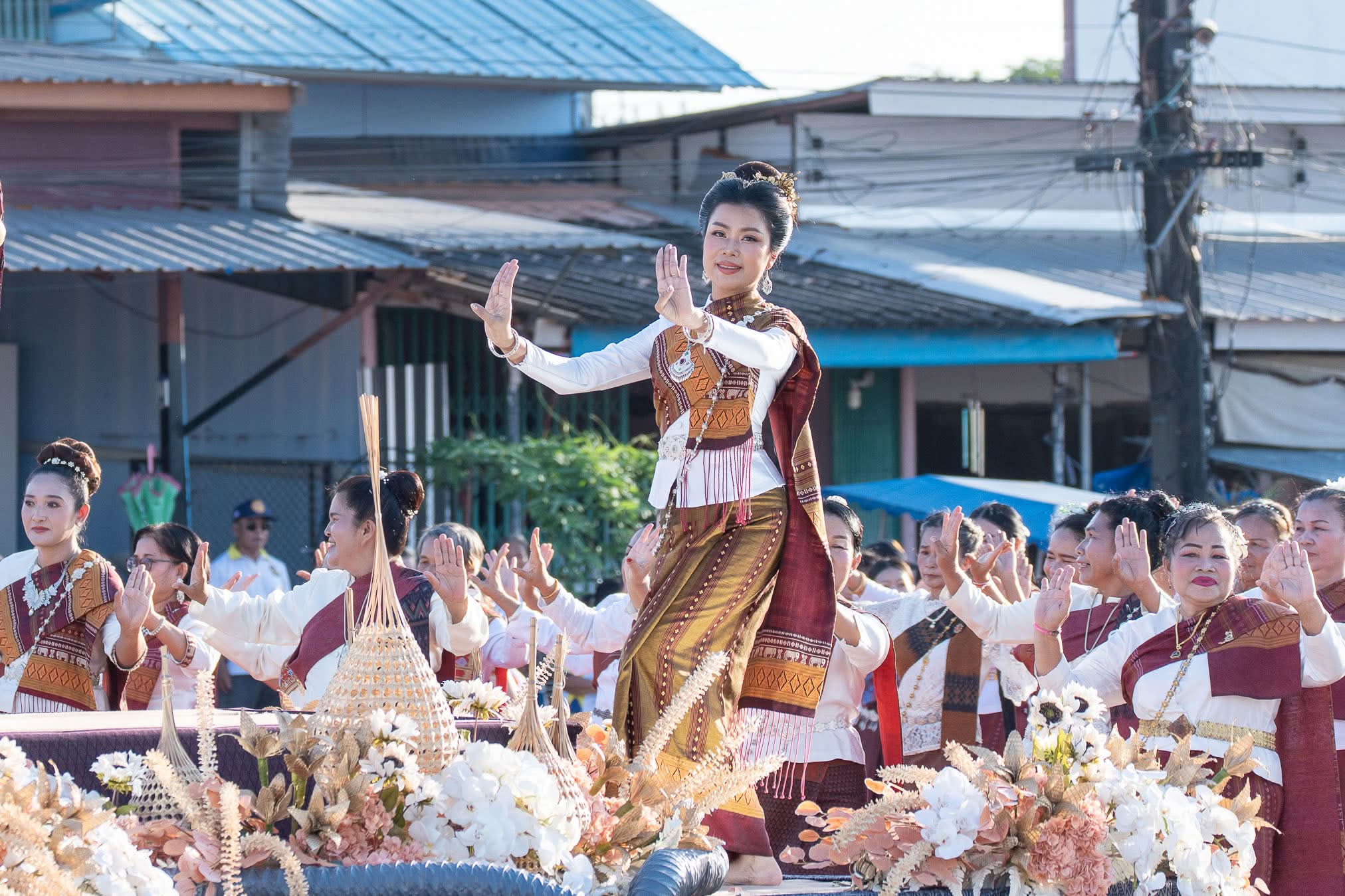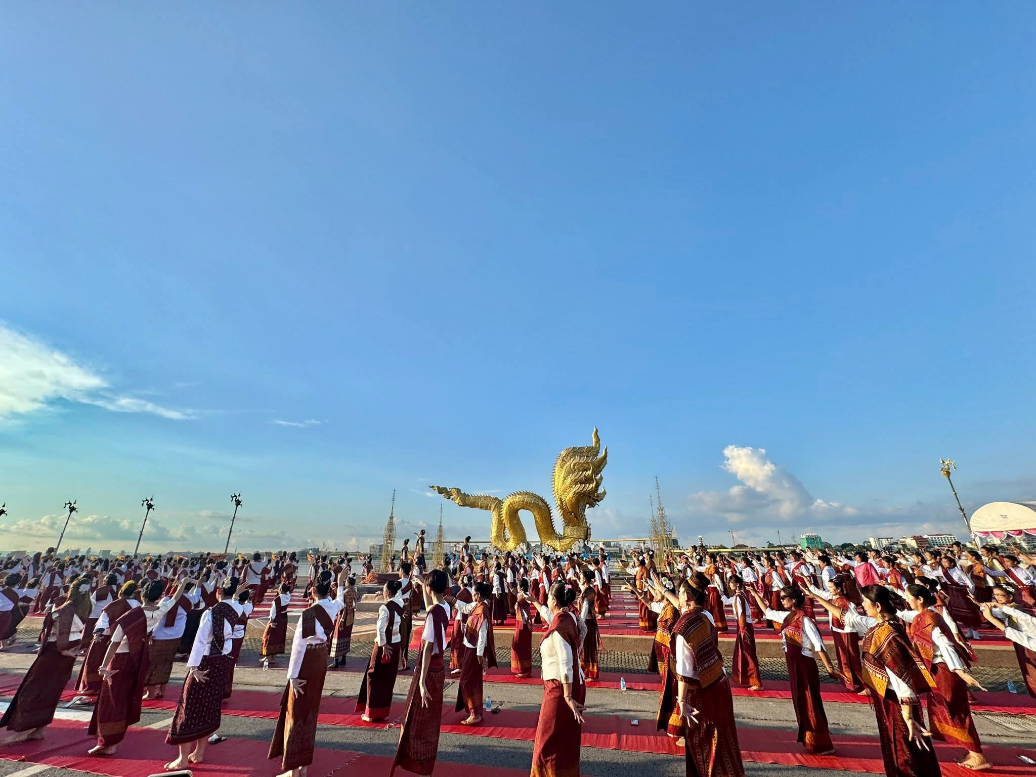 ครูและนักเรียนร่วมรำบวงสรวง สืบสานประเพณีออกพรรษาบั้งไฟพญานาคโลก